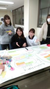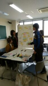 参加学生たちは、ブレインストーミング、KJ法、ロールプレイング、ゲーム等、生き生きと楽しく学んでおり、