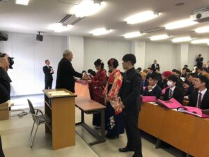 学位記授与式では,学科および研究科の総代として,また成績優秀者に授与される学長賞とそれぞれ大役を果たしてくれました!
