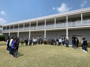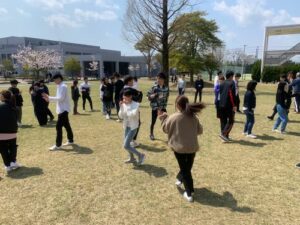 4月8日、9日に福祉学科新入生の合宿オリエンテーションが行われました。まだ入学したてで緊張感のある一年生たちですが、みんなが仲良くなれるように、上級生たち学生リーダーがさまざまなプログラムを企画しました。お互いの自己紹介のあと、誕生日順に並ぶバースデーチェーンをしました。言葉に出さずに誕生日順に並ぶのですから、相手の言いたいことを読み取る力が必要になります。