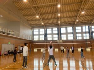 バレーボールを活動グループに分かれて楽しみました。学生リーダーチームも奮闘しました。
