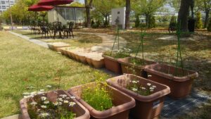ゼミや授業によっては、ここで草花を育てています。