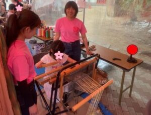 ばらグッズミュージアムでは手作りファンシーグッズや機織り体験を、ぴよっこ広場ではバルーン遊具の遊び方を、子どもたちに提供していました。