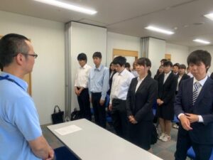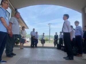 藤井施設長がお出迎えをしてくれましたが、それに対して1年生の片山純太さんが「しっかりと目標をもって見学します」と元気な声であいさつをしました。