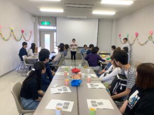 毎年恒例の介護福祉コース新入生歓迎会を5月21日に実施しました。実施したのは「余暇生活支援法Ⅱ」を履修している介護福祉コースの2年生たちです。