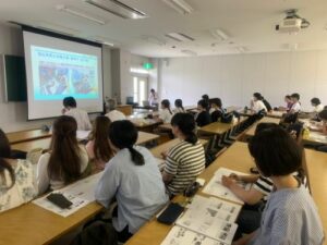 6月20日に行われた基礎演習で、卒業生が講師を務めました。今回講師をしてくれたのは、2012年度卒業の三吉福乃さんです。三吉さんは、卒業してから障害者福祉分野に勤め続けています。結婚と出産を経験した今も現場の第一線で活躍しています。