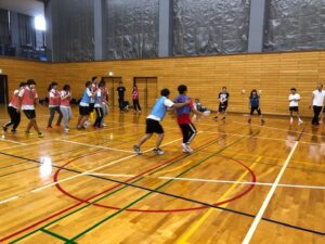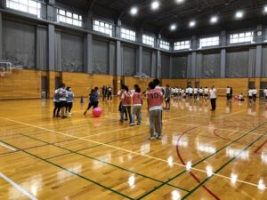 最終週は,審査で上位になった2つのゼミのニュースポーツを皆で実践しました。