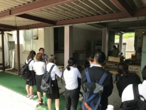 「せんだんの家」「いこいの家」の説明を受けながら、利用者さんの暮らす生活空間や紙すきやさをり織りといった作業空間を見学することができました。工芸的な作業だけでなく、外部の企業から依頼された商品の検品や飼育動物のエサの袋詰めといった作業場面も学ばせていただきました。知的障がいのある人たちが暮らしやすくするため、作業しやすくするための配慮や職員の役割を聞くことができました。