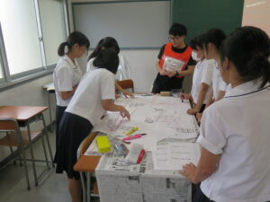 そのため、実際に高校の見取り図を用いて避難所を想定しゲームを行いました。
