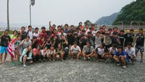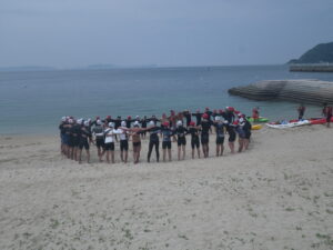 2日目の夜には,バーベキューで英気を養い,いよいよ3日目には学生たちも緊張の中,教員も含め大遠泳を実施しました。