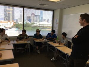2日目は、Central pacific collegeで、英会話学習。学生たちは旅で使える英語を学びました。