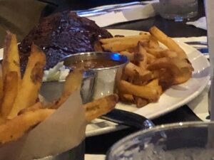 ステーキを注文する者、特大のチーズバーガーを注文する者様々で、飲み物はCentral pacific collegeで習った“Just water, please”でした。