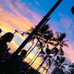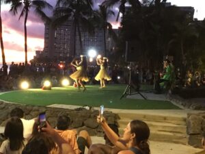 この日は、ワイキキビーチで無料のフラダンスを見ることができるので、6時半にビーチに集合し、しばしフラを鑑賞しました。