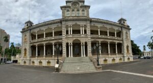 お昼からは、文化研修としてイオラニ宮殿、カメハメハ大王像、リリオカラニ女王像などを訪問しました。