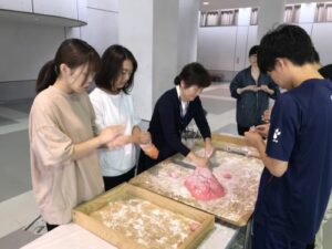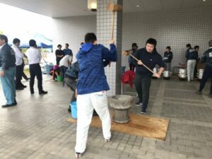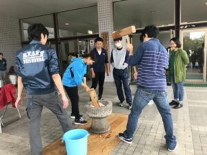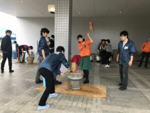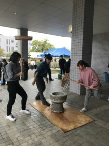 ほとんどの学生が餅つきの経験はなかったですが、「自分もやってみたい」と次々と学生たちが杵を振るっていきました。