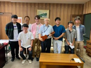 学生たちは。学長のお土産としてウクレレをプレゼントしていました。