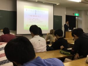 この特別講義は、広島県中小企業家同友会との産学連携を通じて学生によるびんご中小企業研究に関する事業の一環として行われたものです。