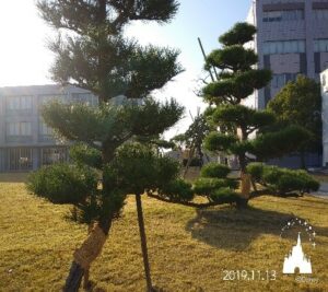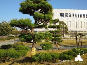 福山平成大学に「こも巻き」の季節がやってきました。キャンパス内の多くの樹木も日ごとに紅葉しています。