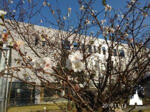 桜(寒桜)も満開、年に二度も桜を鑑賞できます。冬支度のキャンパスの様子です。
