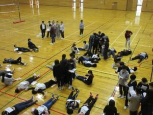 4年生が、DMAT・模擬傷病者に分かれて役割を演じました。