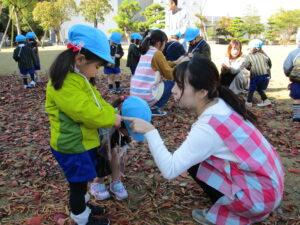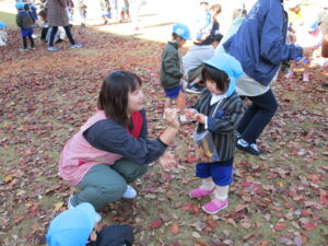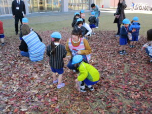 落ち葉拾い(園児と一緒に)授業「保育キャリア演習Ⅰ(幼・保)」より