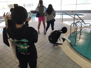 学生たちは将来のトップアスリートやメダリストが誕生する場を目の当たりにする、貴重な機会に恵まれました。