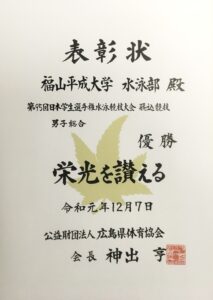 11月の広島県水泳連盟の表彰式に引き続き、日本学生選手権水泳競技飛込競技に優勝(男子総合)の
