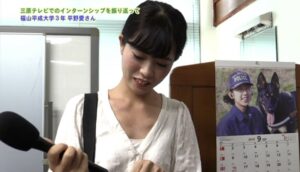 先日行われた「インターンシップ備後4大学合同成果報告会」にて、三原テレビ放送での実習体験について発表した経営学科3年の平野愛さんの実習風景の様子が届きました。