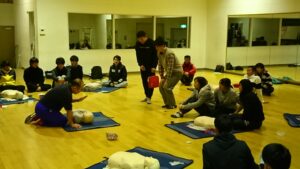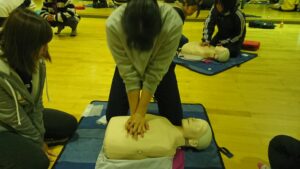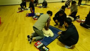 受講生は講義や救急法実習を受けた後、最終日の資格認定試験に臨みました。