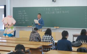 そのあと、平大マスコット「平ちゃん」から記念品が贈られました。