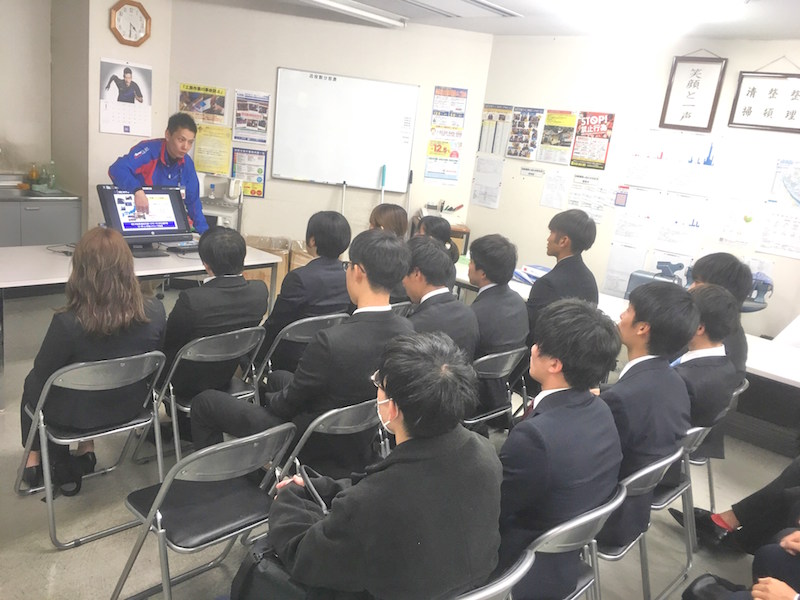 営業成績優秀で表彰を受けたことなどを紹介していただき、学生達は、先輩の頑張りに誇りを感じているようでした。
