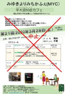 3月28日の平大認知症カフェは中止にします