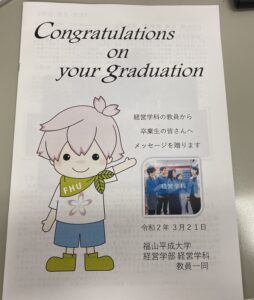 今年は、例年通りの卒業式ができなかったのでせめてもと、教員から卒業生の皆さんにサプライズをしました。