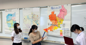 保健師課程の学生が、前回の地域(地区)診断を基に、7月に福山市を地域ごとに分けてより詳しく調べ、発表しました。