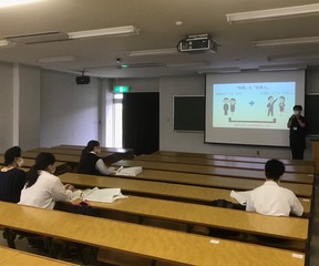 そのあと、前回のキャンパス体験会で好評だった、江口圭一教授による「自分を伝える・他者を理解する」をテーマとした模擬講義も行われました。