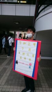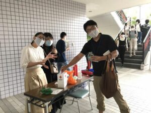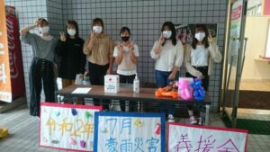 福祉学科1年生が「ボランティア活動演習」の授業で福山市社会福祉協議会の協力のもと「令和2年7月豪雨災害義援金」募金活動を実施しました。