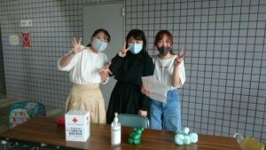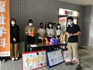 新型コロナ感染防止対策の観点から大きな声での呼びかけはできなかったですが、福祉学科1年生が今まで練習したバルーンアートも披露しながら、自分達で作成したチラシを配るなど積極的に動いてくれました。また、福祉学科先輩も参加してくれてとても心強かったです。