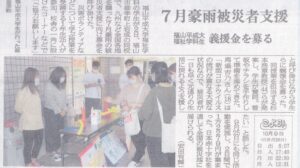 10月8日の山陽新聞に「令和2年7月豪雨災害義援金」募金活動(福山市社会福祉協議会協力)の様子が掲載されました。10月2日に実施した2回目の募金活動の様子になります。