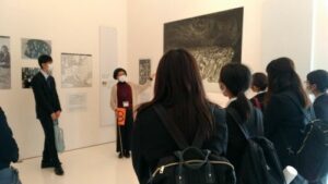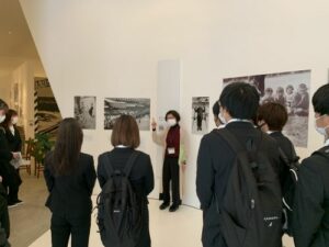 2班に分かれて、学生たちは記念館の展示品を見て回りました。学芸員の解説によって、それぞれの展示品の意味や背景をより深く学ぶことができました。