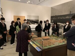 館長からの言葉、また展示品から学び取った「平和を作り出す人になる」は福祉学科での学びにも大いにつながっています。今回の学外学習が学生たちの価値観や人生の指標になっていくことを祈っています。