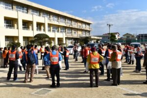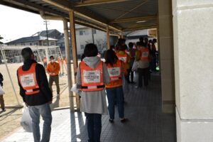 地元・御幸町の地域住民のみなさんと災害ソーシャルワークを学ぶ福祉学科学生、総勢120余名で、避難場所運営訓練を実施しました。