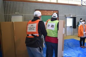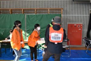 訓練は、新型コロナウイルス禍の中でいかに避難場所を運営するか、を念頭に、感染予防対策に万全を期して実施しました。