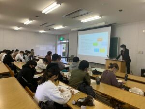 この授業では、毎回、小売流通業の企業の方々にお越しいただき、理論と実践の融合の立場から授業を行っています。