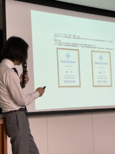 看護学科では、日本一血液疾患を見ている医師、世界のKiguchiと言われる木口亨先生(中国中央病院)の講義を2年生が受講しています。木口先生は2020年度「世界のBest Doctors」に選ばれた医師でもあります。木口先生の講義は情熱的であり、理解しやすく、授業終了時には拍手喝采、学修意欲も益々向上します。写真やサインを求めるくらい魅力的な先生です。次回の講義が待ち遠しいです。 木口先生(右)と一緒に