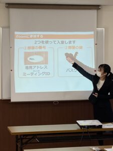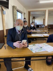 12月には、福山市、ソフトバンク株式会社と共催で、「はじめてのスマホ教室」を開催しました。御幸町内4か所の集会所や公民館で、新型コロナ対策を十分に行い、各会場定員10名と決めて募集したところ、4会場共にほぼ満員となる応募がありました。参加者の皆様は2時間の教室でスマホの基本操作に加え、Zoomができるようになりました。