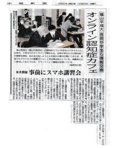 2020年12月30日の中国新聞に、平大認知症カフェ連絡協議会と福山市、ソフトバンク株式会社が共催した「高齢者向けはじめてのスマホ教室」の様子が取り上げられました。