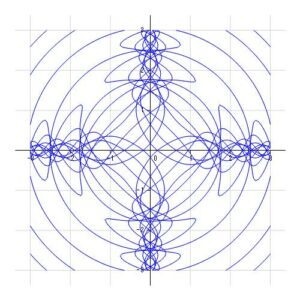 その中で、昔考えた変な形の陰関数の等高線を描いてみようと思い、作ったのが下の図です。