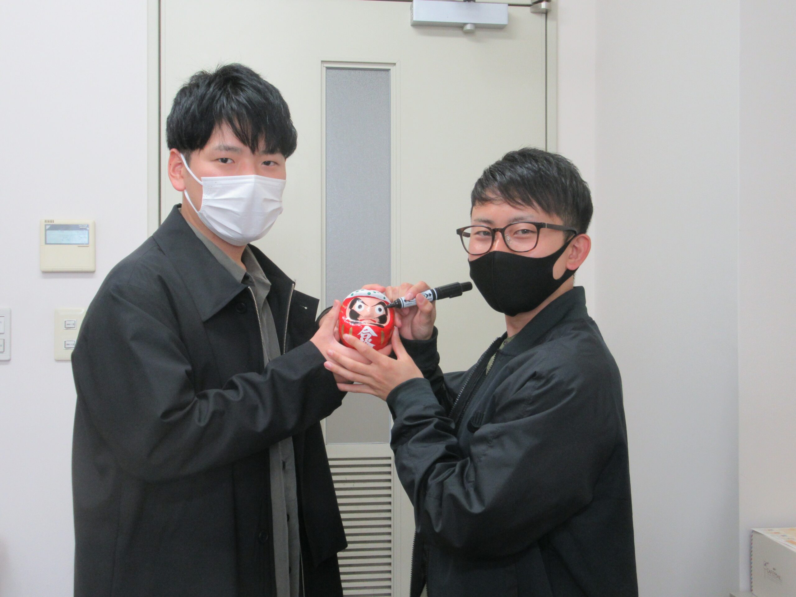 第110回 看護師国家試験合格発表が3月26日(金)に行われました。看護師国家試験の合格率は、全国平均よりも高い結果でした。木宮学部長からの合格祈念のダルマに国家試験対策委員が、大願成就の目玉を入れました。コロナ禍など大変な時代ですが、これから看護専門職としてご活躍されることを教員一同祈っています。
