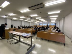 例年ですと,全教員で新入生の皆さんをお迎えしているのですが,コロナ禍ということもあり,教員の人数を制限した対応になってしまいました。