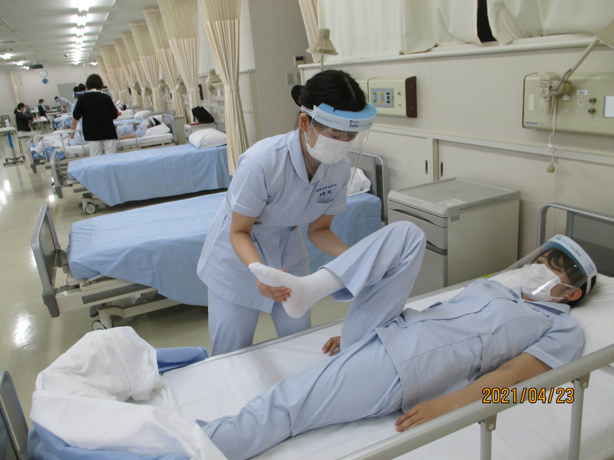 第1回目の「成人看護援助学」技術演習の様子です。患者さんに適切な援助を行うための