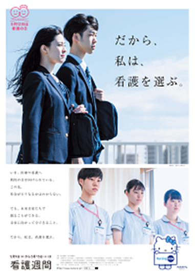 これは、全国看護協会の令和3年度のポスターです。コロナ禍にもかかわらず高校生がなりたい職業の第1位は「看護師」になっています。